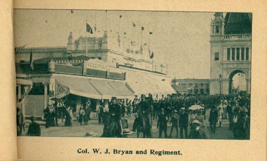 Col. William Jennings Bryan and Regiment parading down the Midway. (Ibid.)
