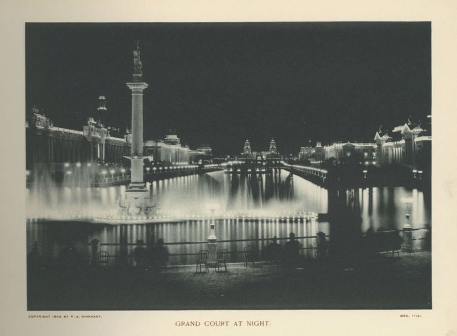 Grand Court at Night Photograph by Rinehart ("Rinehart's Book of Views") Center for Digital Research in the Humanities UNL-Libraries.