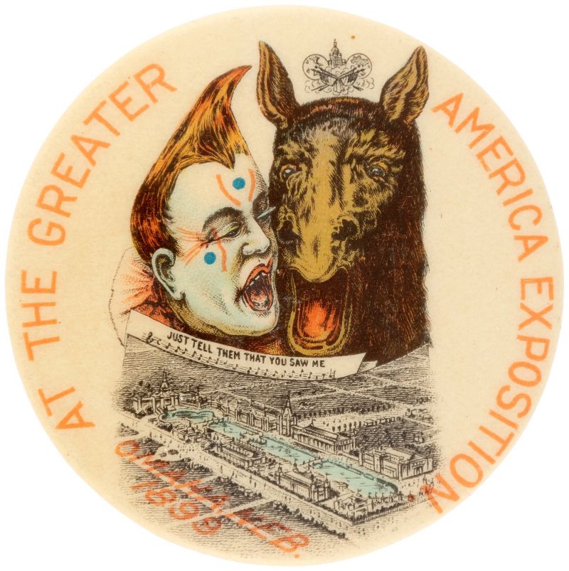 AT THE GREATER AMERICA EXPOSITION BUTTON, 1899. (Hake's Auctions)