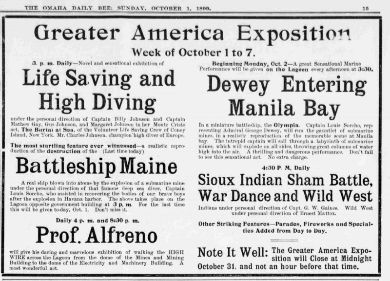 Ad for Greater American Exposition, "The Omaha Daily Bee," October 1, 1899. (ibid.)