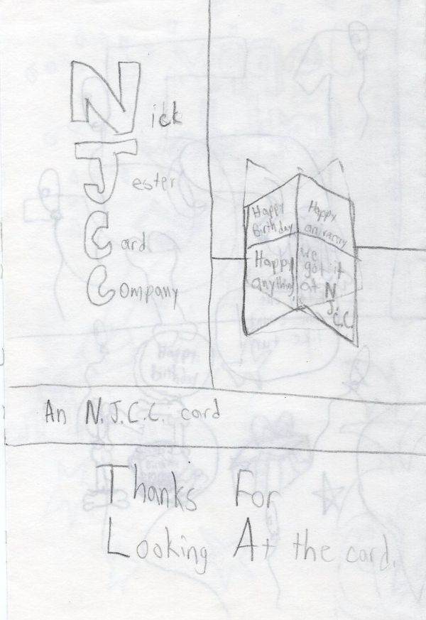 Back of Birthday card by the Nick Jester Card Co., 2001.