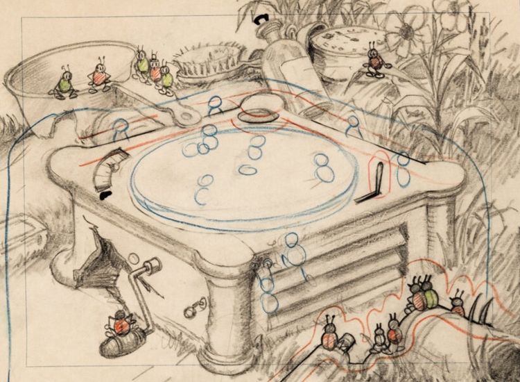 The following is an original "Bugs in Love" layout drawing by Walt Disney, 1932 which was sold by Heritage Auctions on December 19, 2019.