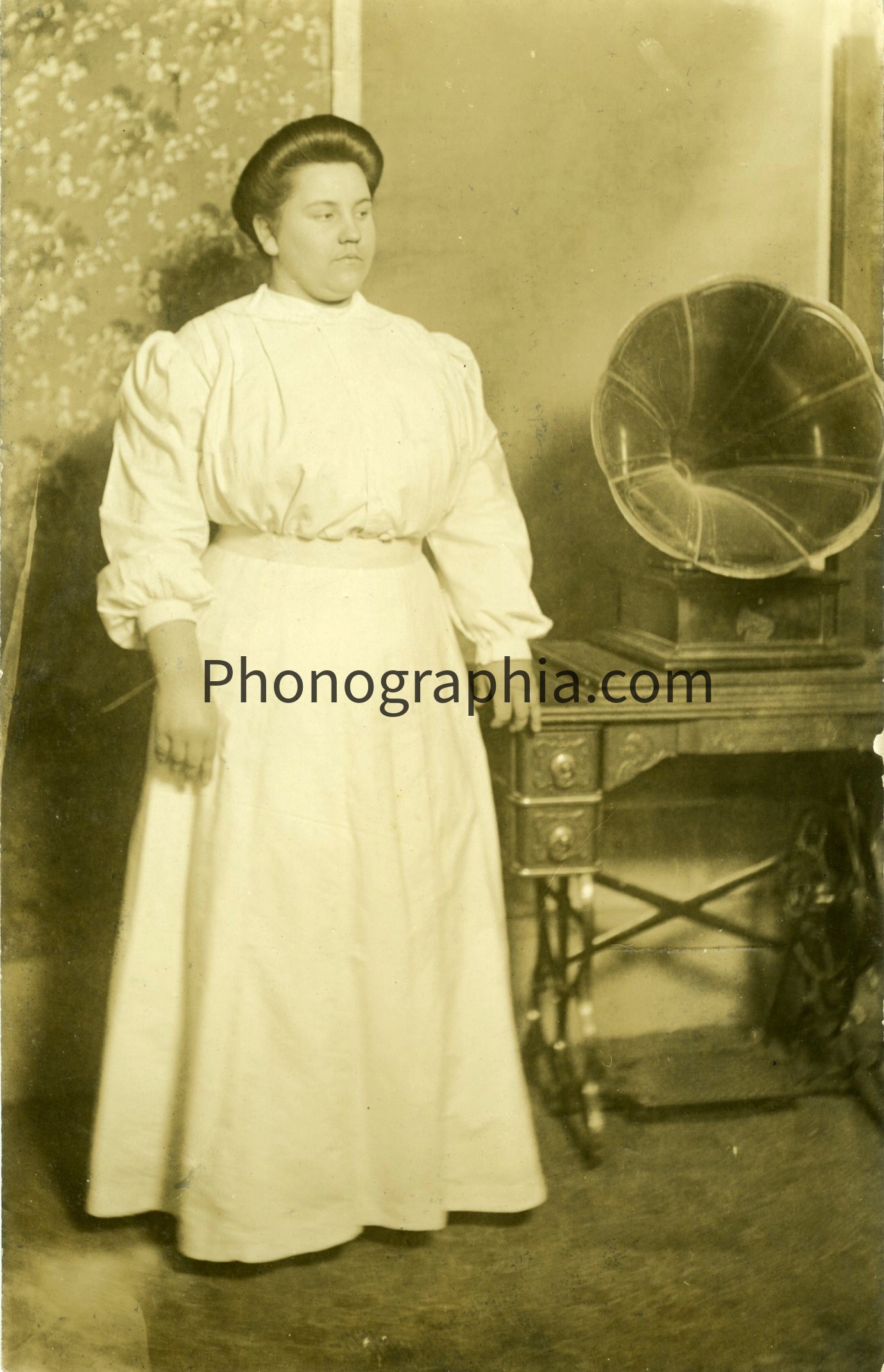 Portrait of Woman with her Columbia Graphophone and Sewing Machine, ca. 1910 (PM-0021). |