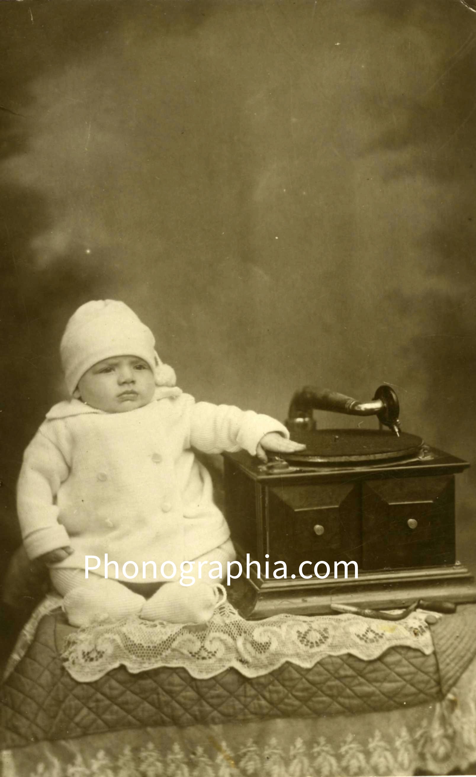 Baby in portrait with Gramophone, ca. 1915 (PM-0689). |