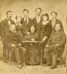 Family portrait with sewing machine By Welch & Co. Photographic Artist, Suspension Bridge, N.Y. |