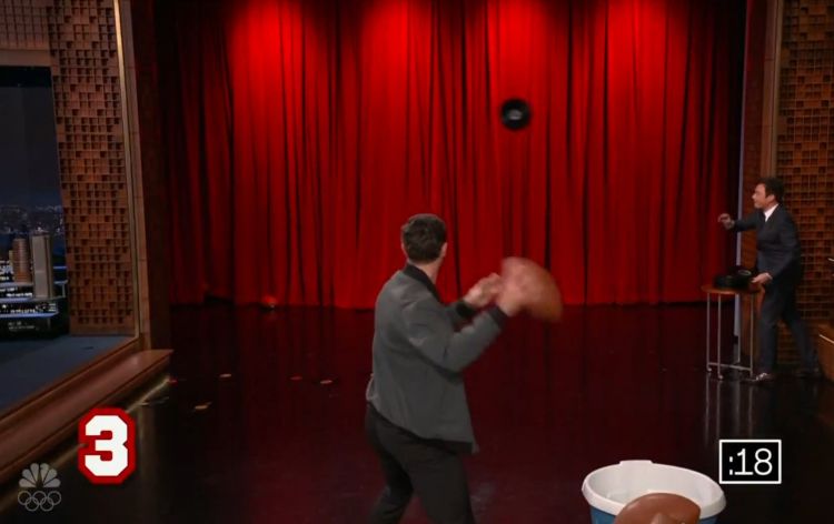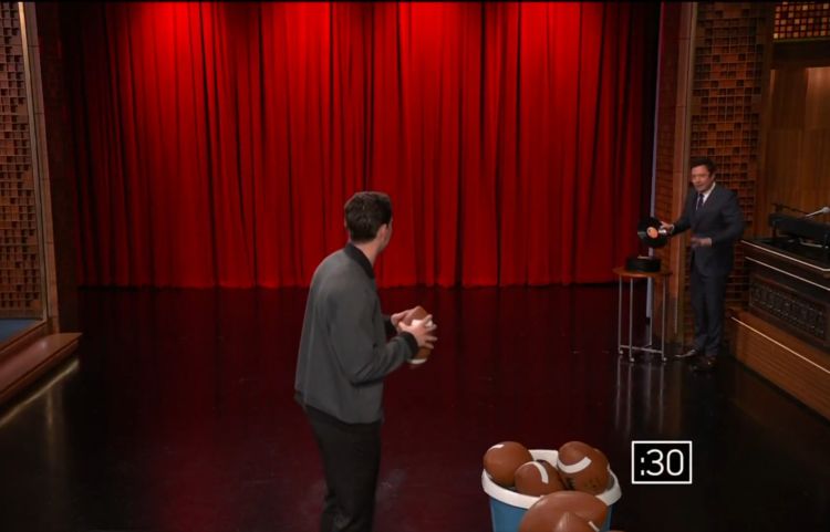 Literally "breaking records" by 2025 Heisman Winner Fernando Mendoza with Jimmy Fallon tossing the records.