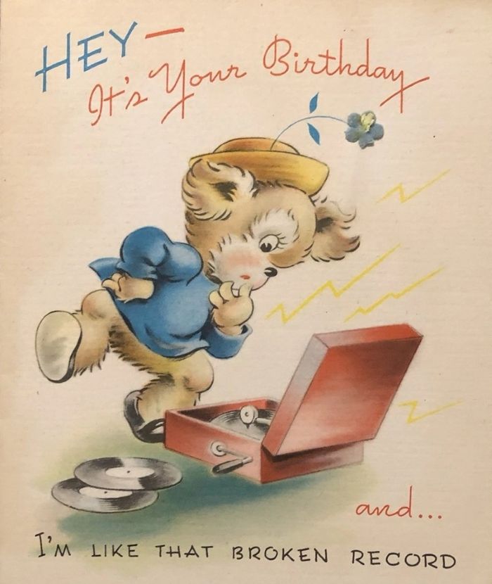 "I'm like that Broken Record - I keep spinning and repeating "Happy Birthday!" c.1950 (PM-2291)
