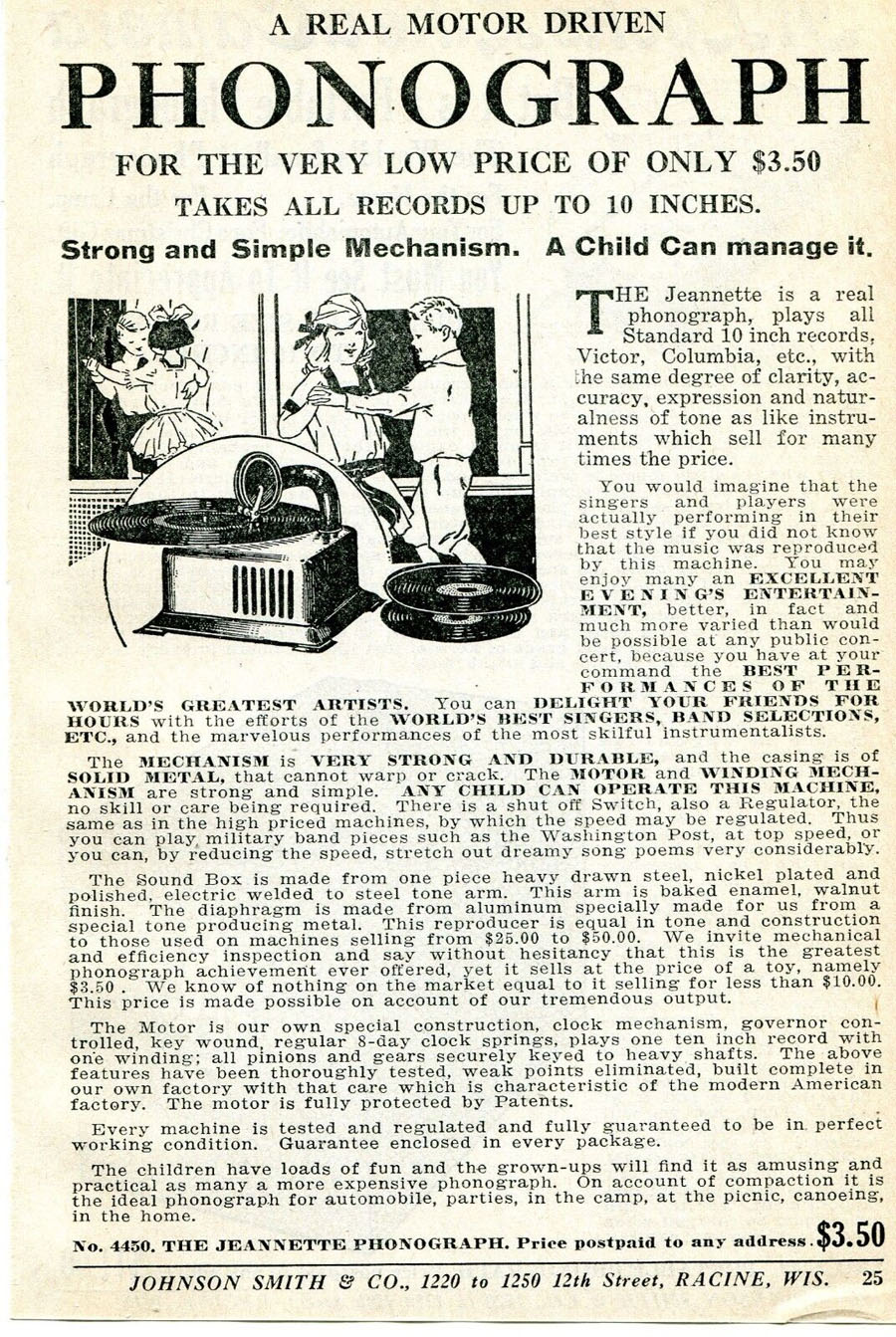 "Any Child Can Operate This Machine." The Jeannette Phonograph, No. 4450, Johnson Smith & Co., Catalogue, 1926