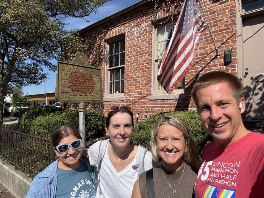 (L-R) Two of their friends accompanied FOTP Members Laura and Ryan to Edison's Butchertown House in September 2025 where they were all surprised to have such a nice tour. We now have two new Friends of the Phonograph, Espie and Abby.(Left to right Espie, Abby, Laura, and Ryan).