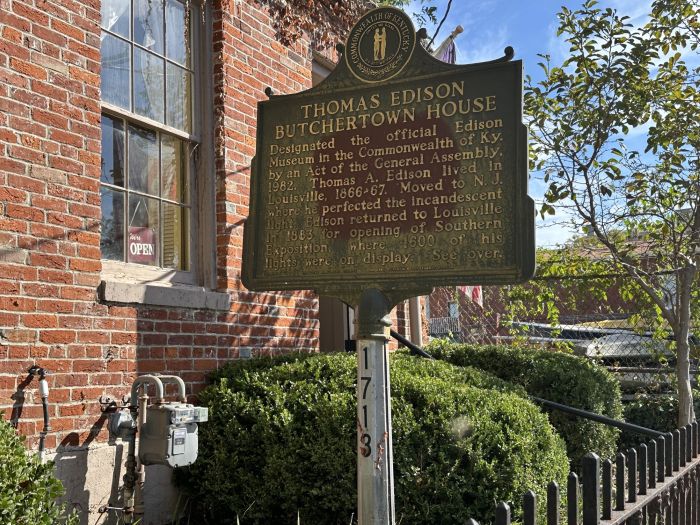 built around 1850. According to the historic marker, Thomas Edison rented a room in this house as part of the time he lived in Louisville from 1866 to 1867.